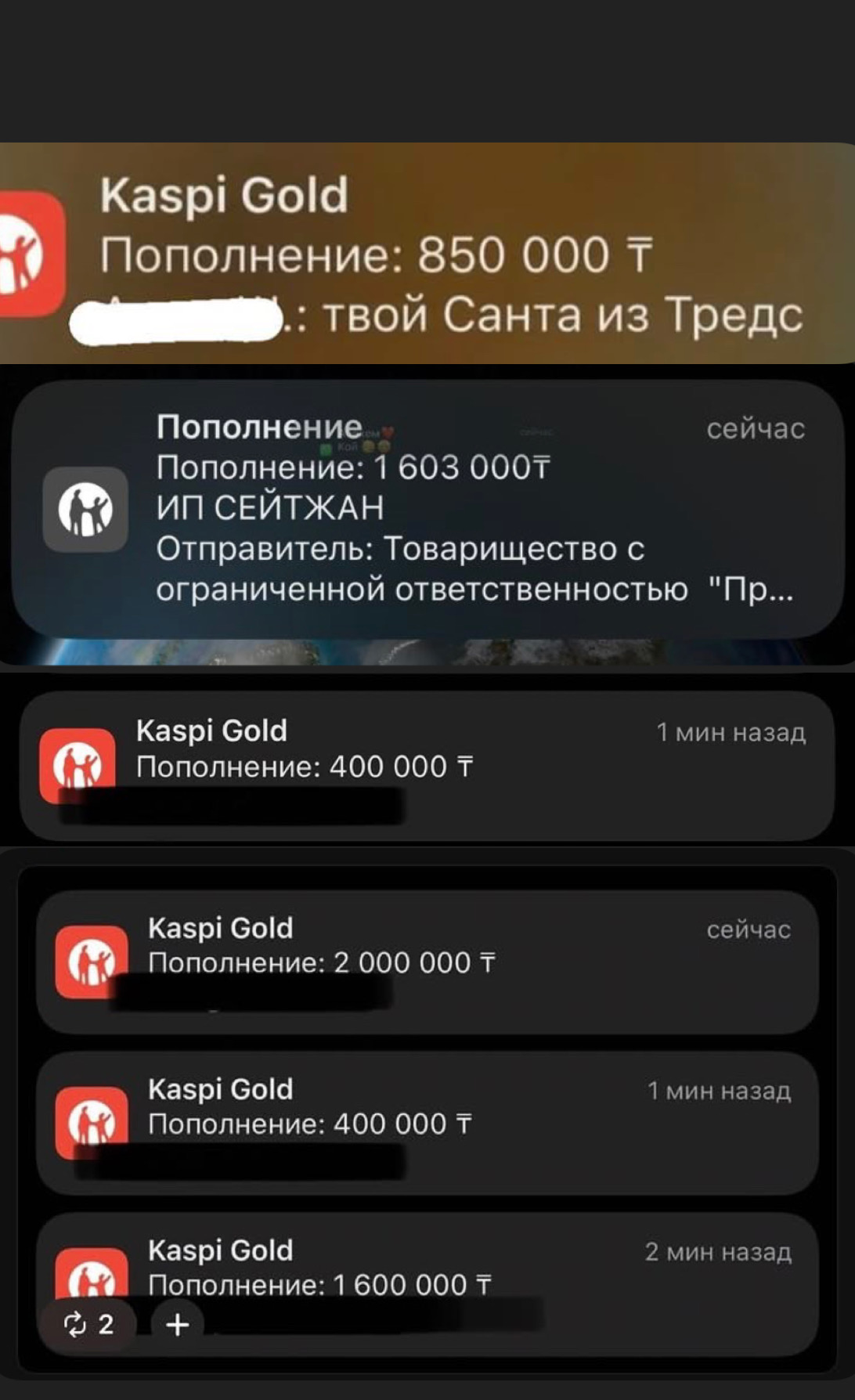 Әлеуметтік желілерде қазақстандықтар банк қолданбаларынан түскен ақша туралы скриншоттар жариялап жатыр. Кей фотоларда ондаған мың теңге, ал кейбірінде миллионнан астам қаражаттың түскені көрсетілген. Пайдаланушылар бір-біріне ақша аударып, осылайша табысты көбейтуге болады деп шақырып, ақшалай “Құпия Санта” ойынын таратуда, деп хабарлайды Nur.kz