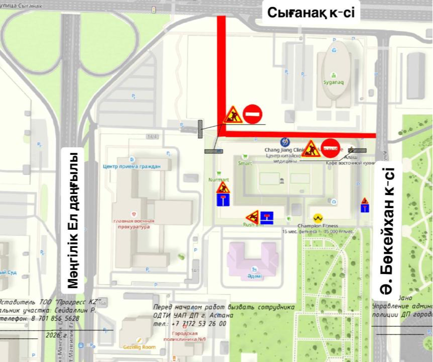 Астана қаласының әкімдігі елорданың маңызды көлік дәліздерінің бірінде қозғалыстың уақытша шектелетінін хабарлайды. Мәңгілік Ел даңғылы мен Сығанақ көшесінің қиылысындағы ауданда жаңа көшелердің құрылысы басталуына байланысты, көлік қозғалысы толықтай тоқтатылады.